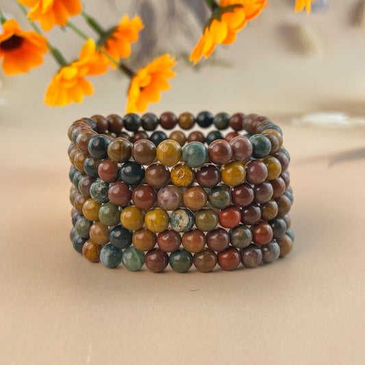 6/8/10mm Natural Ocean Jasper Crystal Stretch Bracelets Healing Crystal Crafts