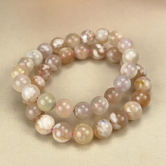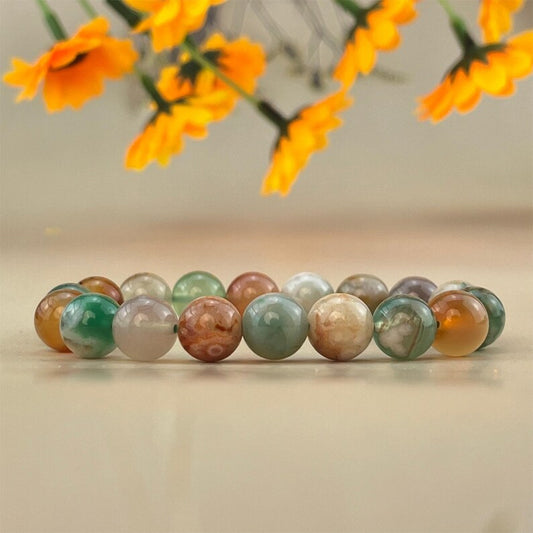 【Bracelet】6/8/10MM Color Flower Agate Crystal Bracelets Stretch Gemstone Bracelets Handmade Healing Crystal Crafts