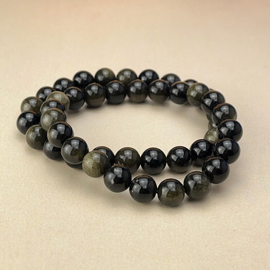 【Bracelet】6/8/10MM Gold Sheen Obsdian Crystal Bracelets Healing Crystal Crafts Gemstone Bracelet