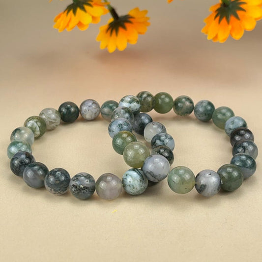 Natural Moss Agate Crystal Bracelets Healing Crystal Crafts Gemstone Bracelet