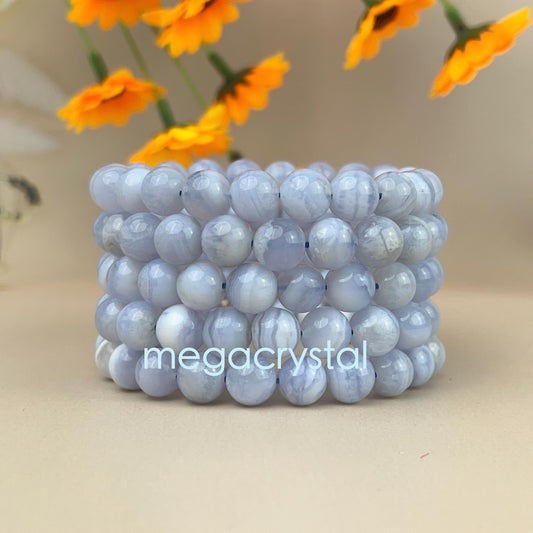 【Bracelet】6/8/10MM 5A Natural Blue Lace Agate Crystal Bracelets Handmade Healing Crystal Crafts Gift for Women