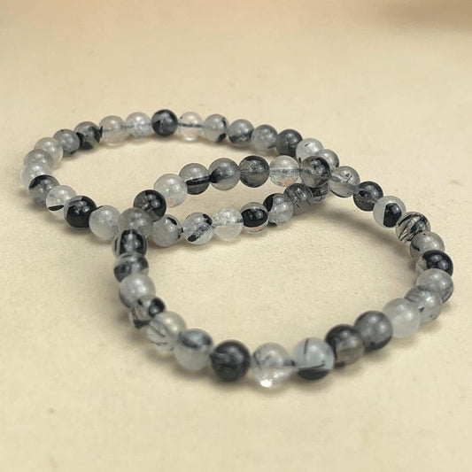 Natural Black Tourmaline Rutilated Quartz Crystal Bracelets Healing Crystal Crafts Gemstone Bracelet