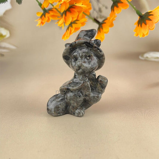 Natural Crystal Halloween Witch Cat Carved Healing Crystal Crafts