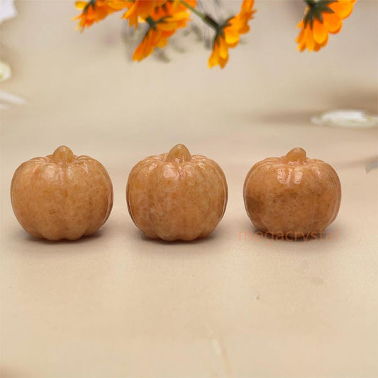 Natural Crystal Pumpkin Yellow Calcite/ Sunstone Carved Healing Crystal Crafts Halloween Decor