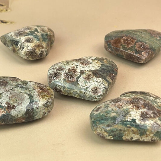 Green Sakura Hearts Carved Healing Crystal Crafts Gemstone Carvings
