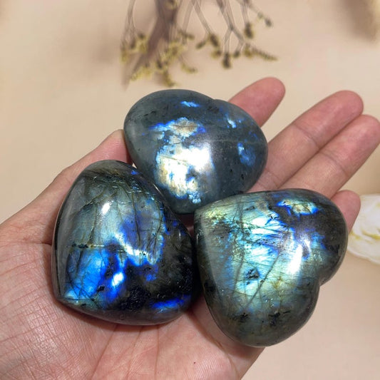 Natural Labradorite Hearts Carved Healing Crystal Crafts Gemstone Carvings
