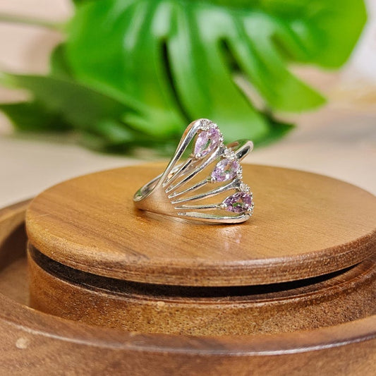 Natural Hypersthene/Amethyst/Kunzite Adjustable Crystal Rings Healing Crystal Crafts Gemstone Jewlery