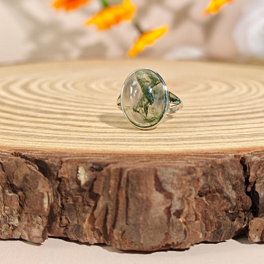 Natural Moss Agate/Kyanite/Moonstone Adjustable Crystal Rings Healing Crystal Crafts Gemstone Jewlery